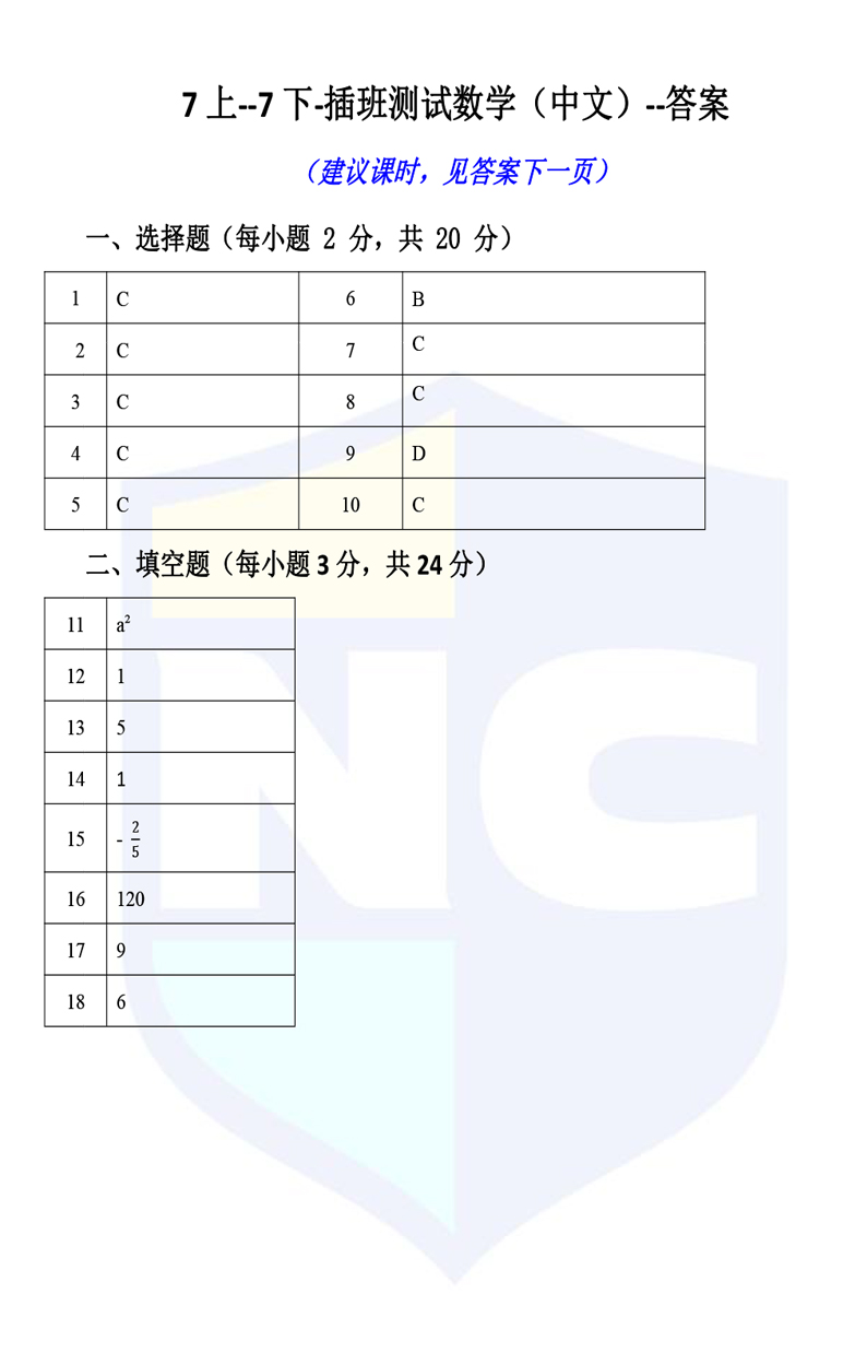 本文标题:上海国际学校7年级(上)-7年级(下)-插班测试数学卷-答案(中文板)