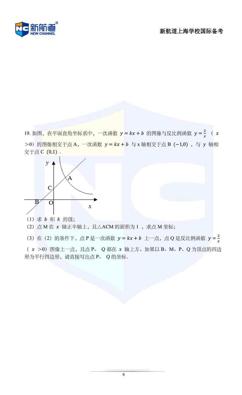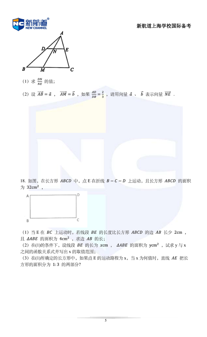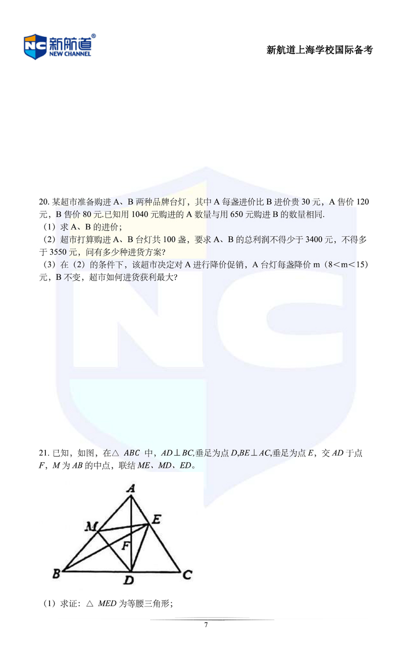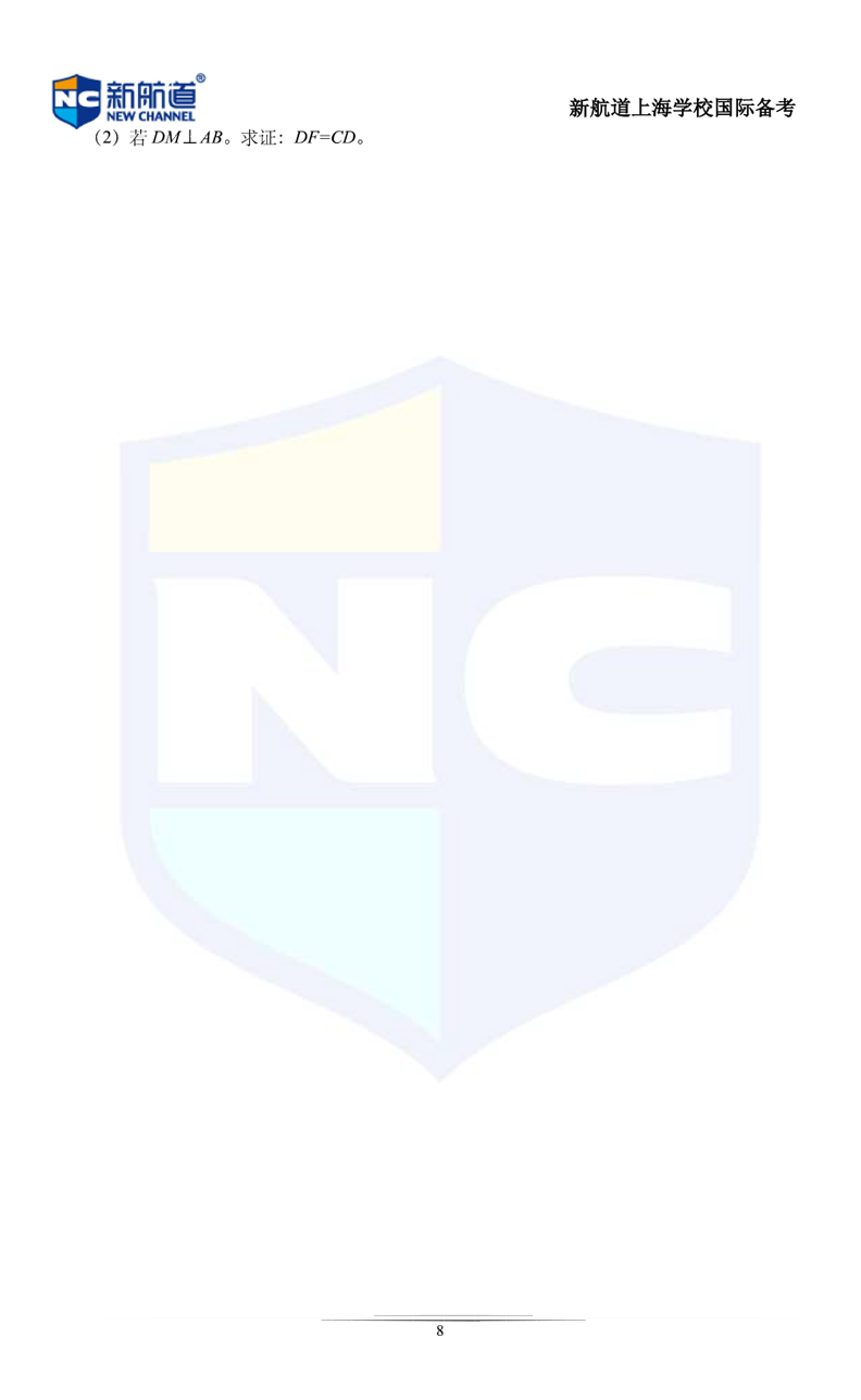 上海国际学校8年级(下)-9年级(上)-插班测试数学卷(中文板)+答案 等......