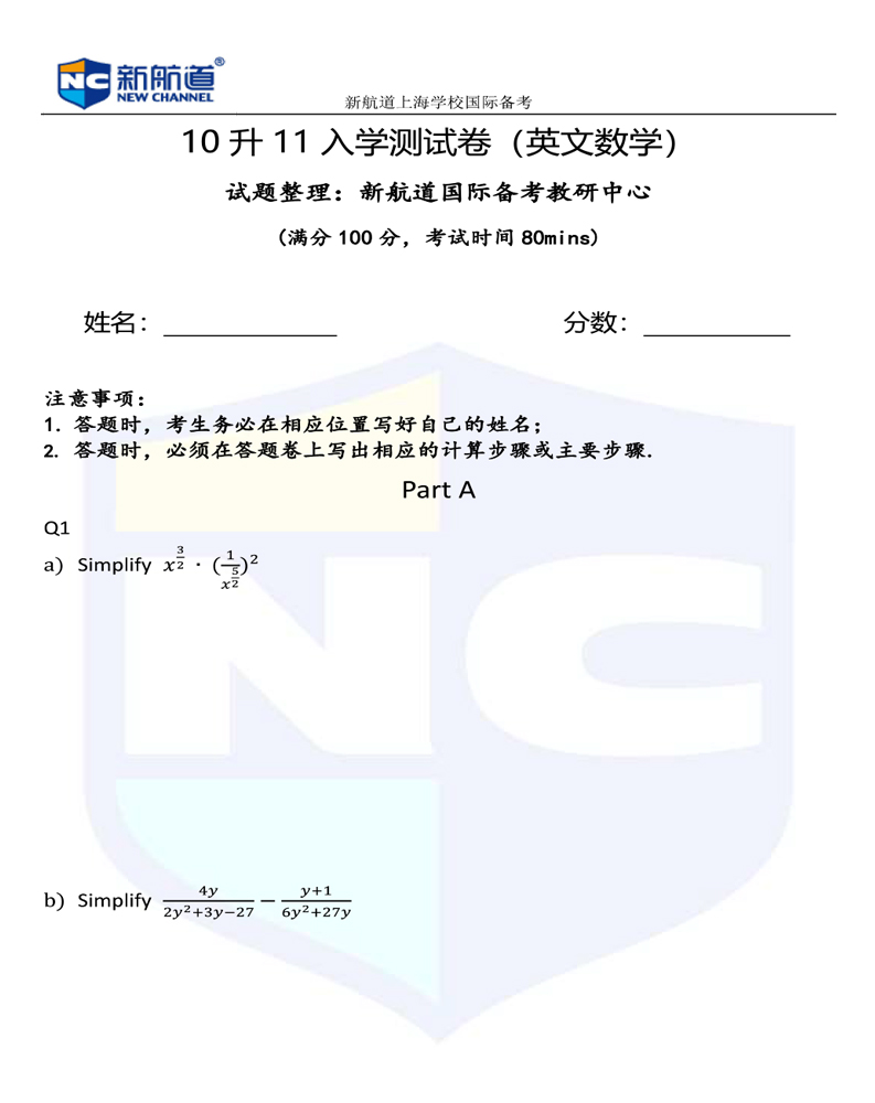 本文标题:上海国际学校10年级升11年级-插班数学测试卷(英文版)