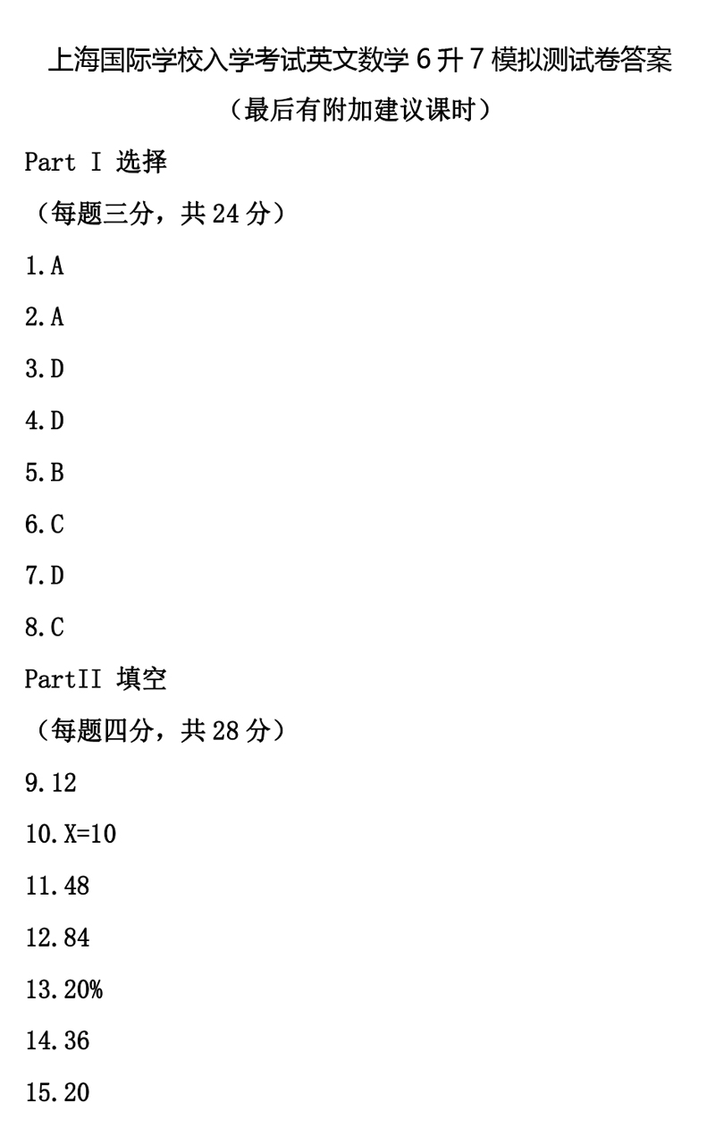 免费领取:部分上海A类国际学校入学测试模拟题,AMC8/10/12真题测试卷;等国际学校备考资料。