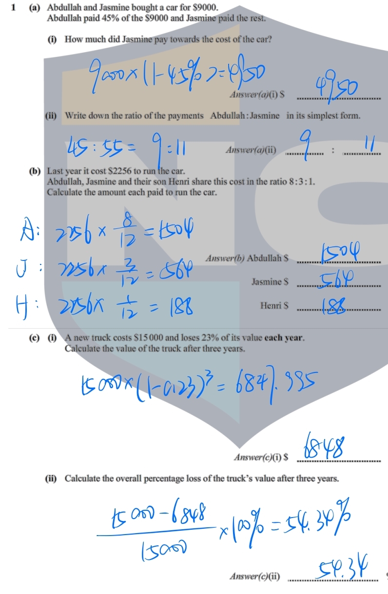 上海国际学校10年级升11年级插班数学测试卷-答案(英文版)