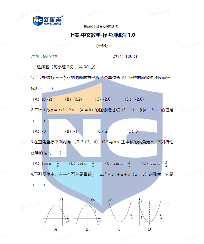 需要备考国际的同学有福利了,今天我们一起来看“上实剑桥春招中文数学模拟考试卷-【新航道版】”