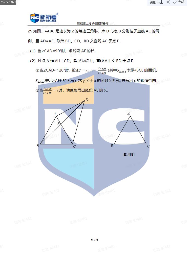 以上就是“上实剑桥春招中文数学模拟考试卷-【新航道版】”一共9页,有需要的同学可以把题目刷起来,如需要答案,可与我们的在线客服联系
