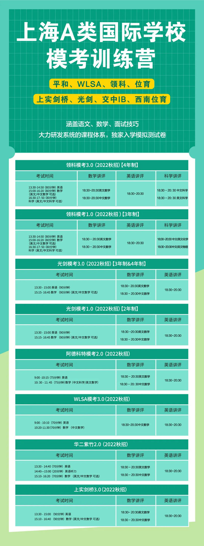 另外,我们的最新一期的“上海A类国际学校模考训练营”开始报名了,有需要的与我们的联系预约报名!