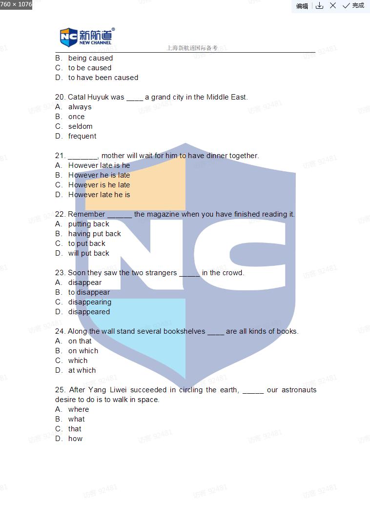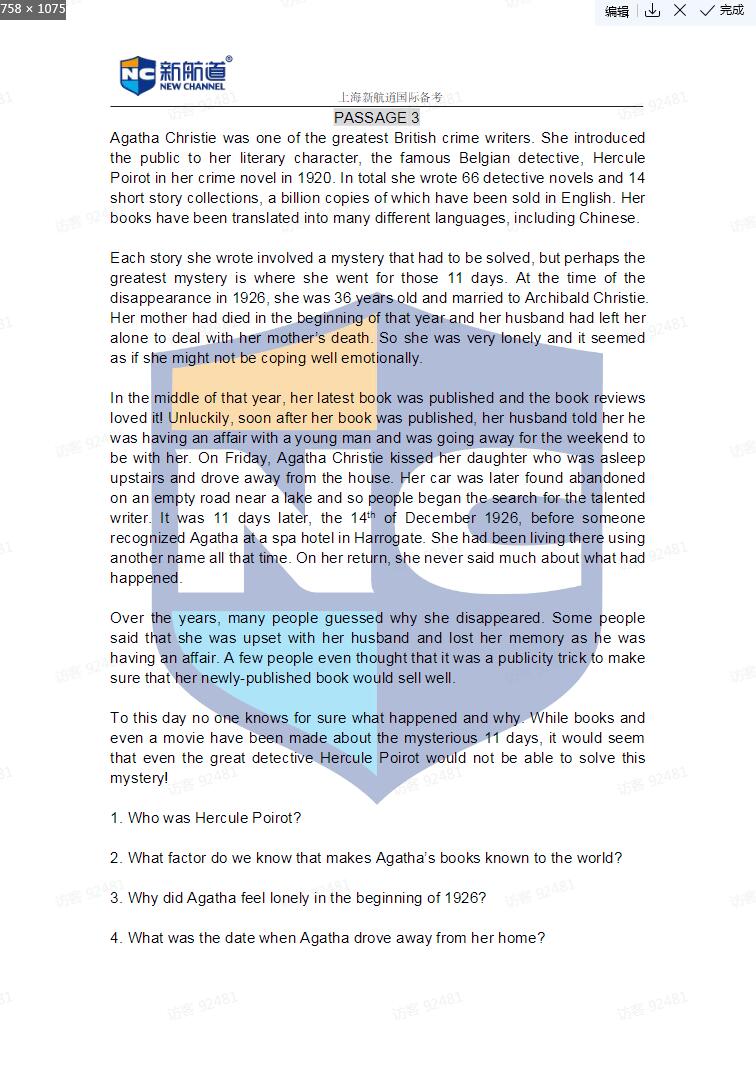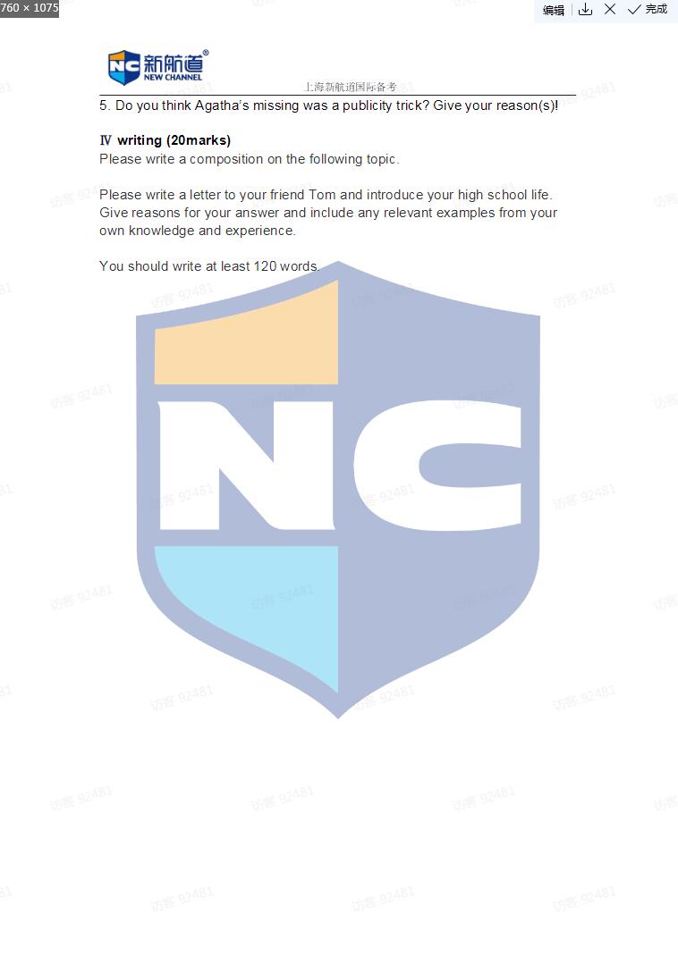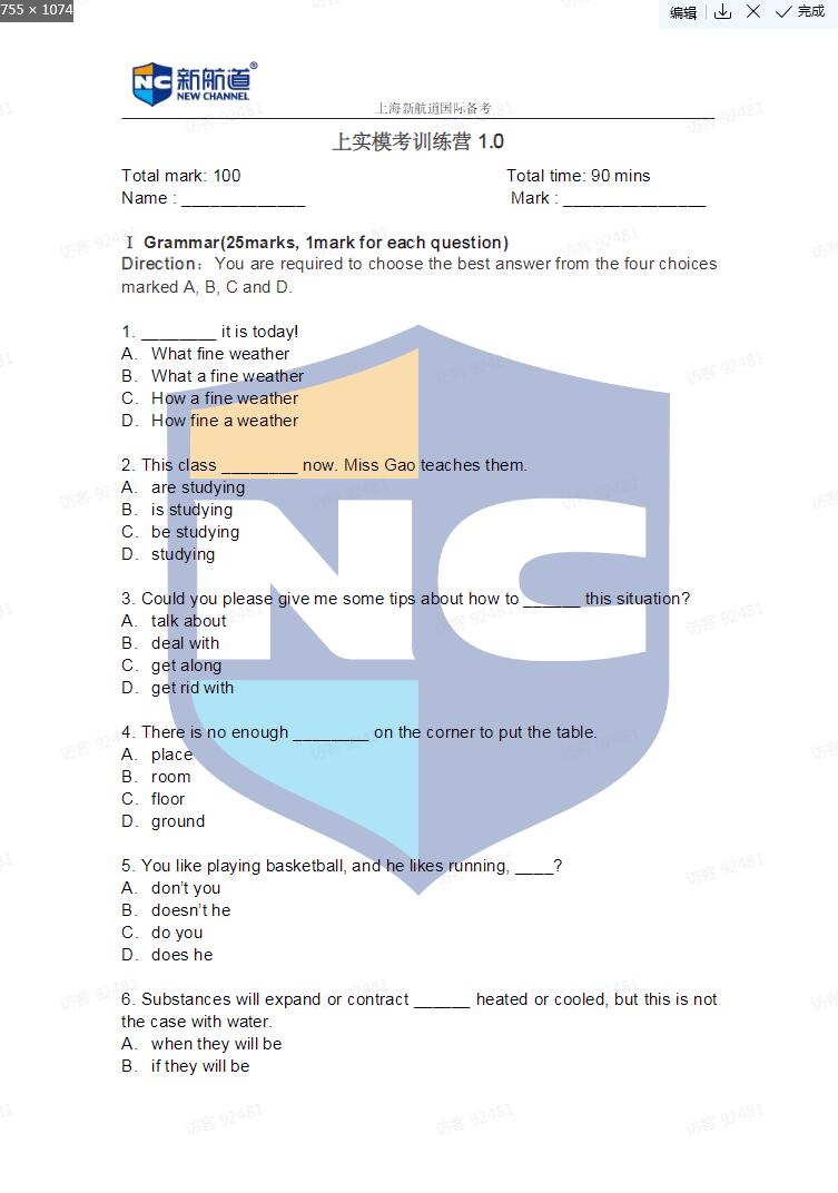 今天上海新航道国际学校小编首次给同学们公开“上海部分国际学校模考真题(新航道版)”