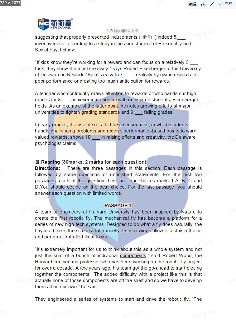 以上就是“上实剑桥模考真题试卷【新航道版】”一共11页,有需要的同学可以把题目刷起来,如需要答案,可与我们的在线客服联系