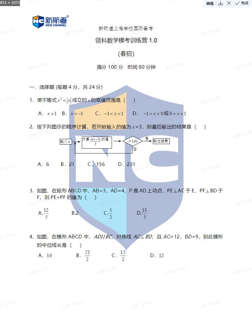 免费领取:部分上海A类国际学校入学测试模拟题,AMC8/10/12真题测试卷;等国际学校备考资料。