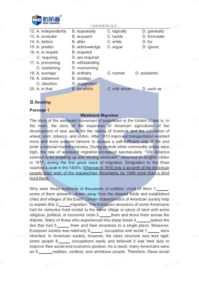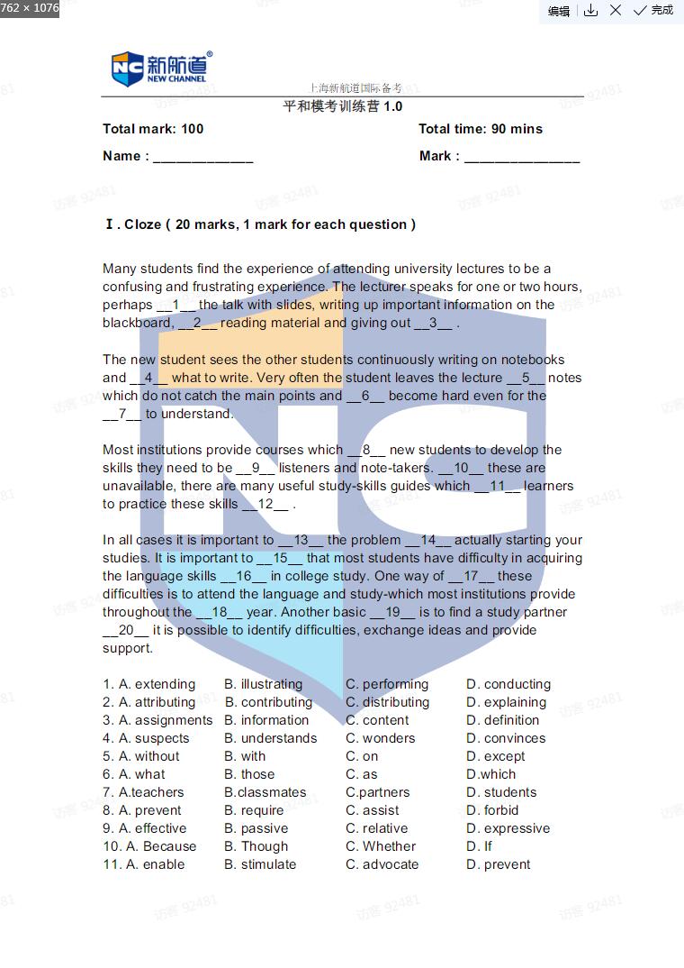 以上就是“2022年上海平和模模拟考试真题【新航道版】”一共11页,有需要的同学可以把题目刷起来,如需要答案,可与我们的在线客服联系
