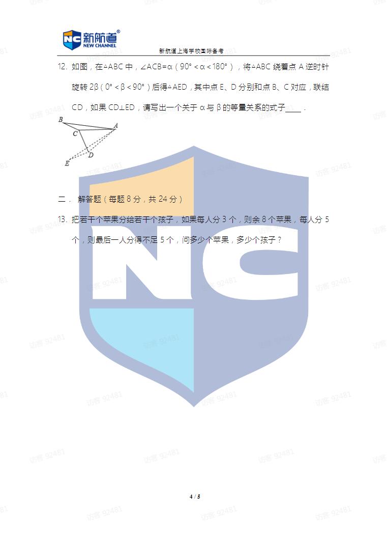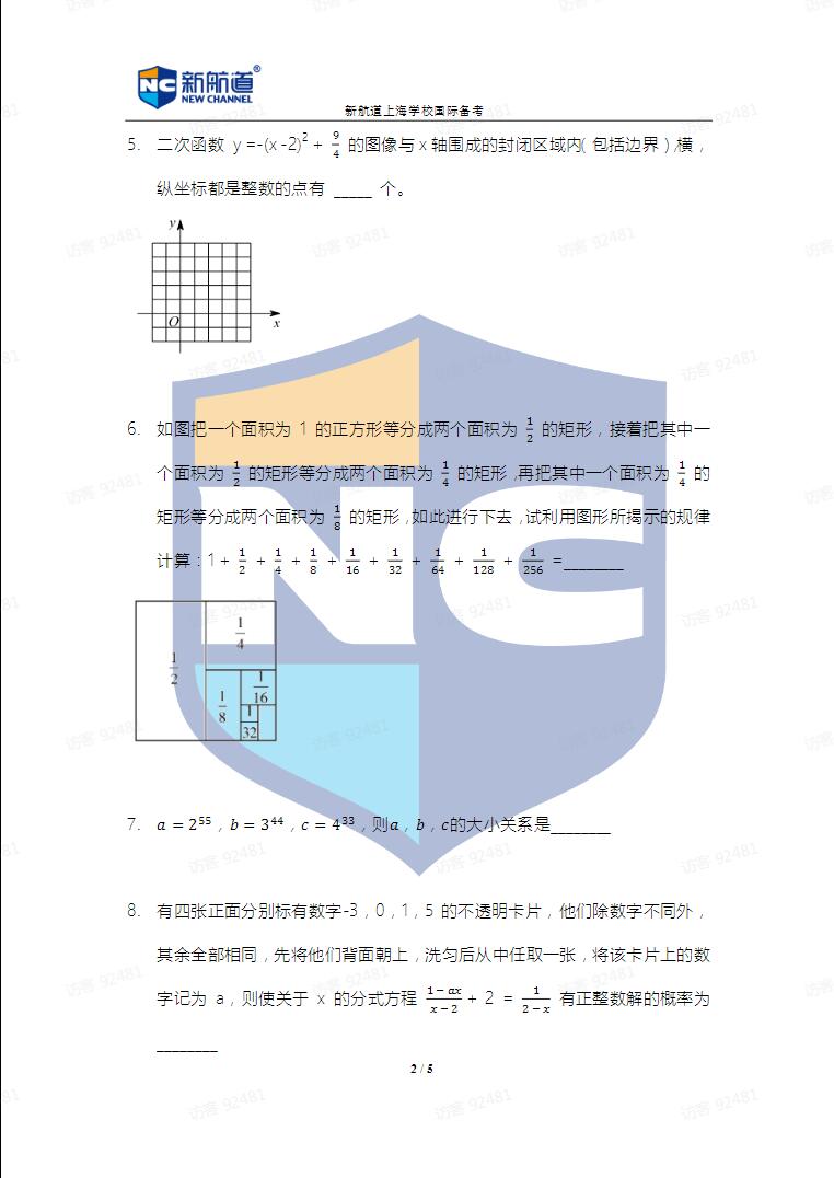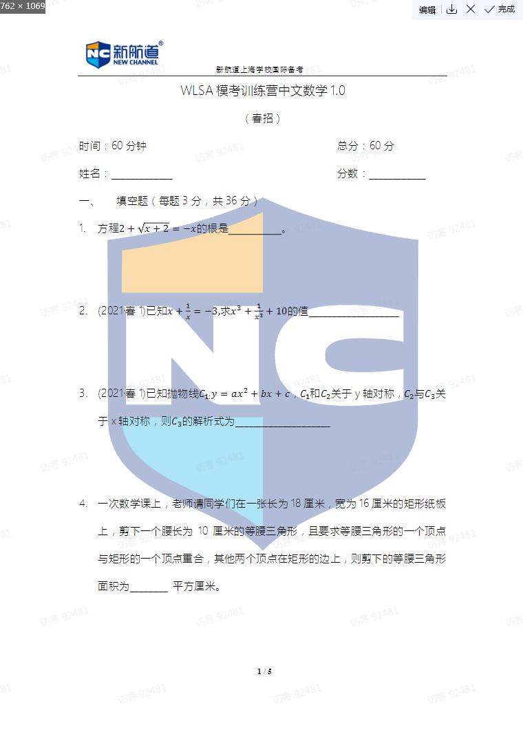 本文标题:上海新航道【WLSA模考】训练营中文数学考试真题