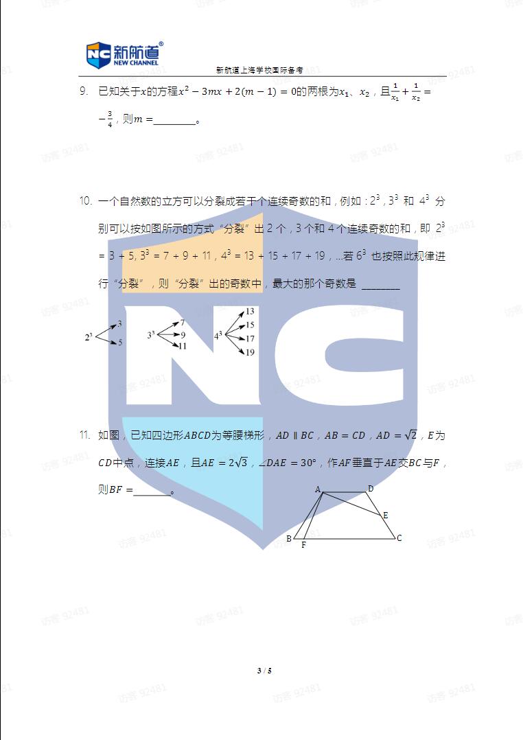 今天为大家带来了“上海新航道【WLSA模考】训练营中文数学考试真题”
