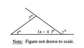3.In the figure above, two sides of the triangle have been extended. If y=80, what is the value of z?
