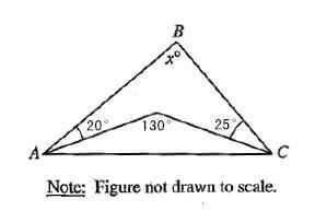 看到图中一共给了三个角度,要求x,另外两个内角之和。分别求肯定是条件不足,但是图中130°角形成的也是一个三角形,那么用180°—130°就可以求得这个小三角形的另外两个角之和为50度。再加上所给出20°和25°就能得到大三角形两个内角之和=50+20+25=95度,x的值很快就能求出,x=180-95=85°。