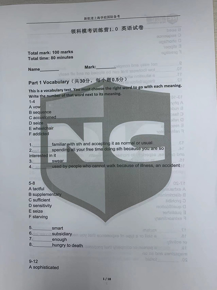 以上就是“2022年新航道上海学校国际备考 领科模考训练营1.0英语模考试卷”一共有18页,有需要的同学可以把题目刷起来,如需要答案,可与我们的在线客服联系