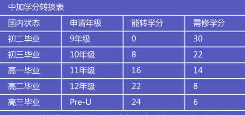 以下的表格显示了学分转换机制(注:此表格只作为参考)