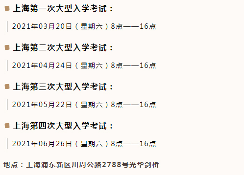 2021年秋季招生,光华剑桥共安排四次大型入学考试: