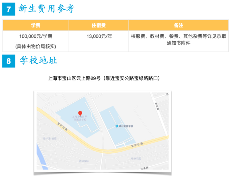 上海宝山区世界外国语学校(shanghai baoshan world foreign language school(以下简称宝山世外)地处宝山顾村。是由均瑶集团下属上海世外教育集团创办的一所十二年全日制学校,与上海世界外国语中学、上海世界外国语小学、青浦世界外国语学校、金山世界外国语学校等都隶属同一集团公司。宝山世外是上海世外教育集团在宝山的直属学校,同时也是“世外教育”集团化办学的标志性学校之一。这是一所包括小学、初中和高中多个学段的12年一贯制民办学校。宝山世外将秉承世外教育的价值理念和教育资源,关注更多样的课程结构和更丰富的教学方式,为每一位师生的成功而砥砺前行。