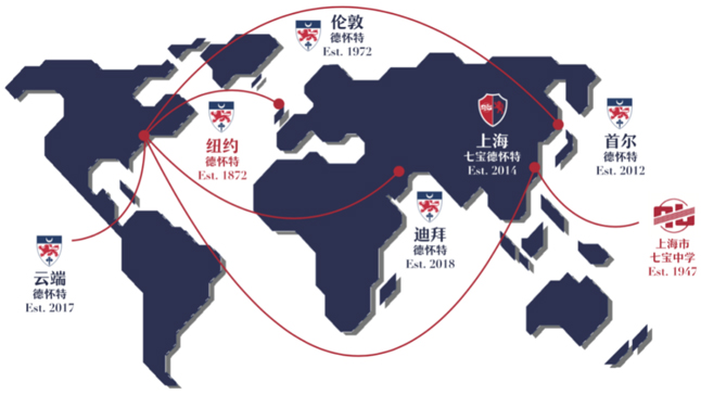 上海七宝德怀特高级中学是由上海市七宝中学和美国纽约市德怀特学校合作举办的,获上海市教育委员会批准设立,中国教育部备案的上海第一所独立设置的中外合作高中。学校于2014年正式开学,2017届第一届毕业生顺利毕业。