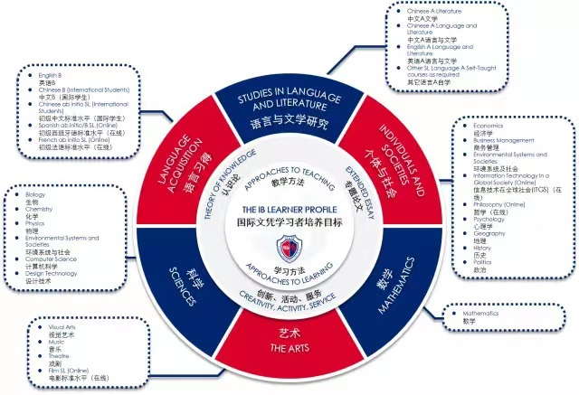 所有IB课程均旨在培养具有国际意识的人,他们要能够认识到其共同人性及共同的地球守护职责,并为创造一个更美好、更和平的世界做出贡献。IB素养展现了IB国际学校所珍视的10大特性,这些特性及其他类似特性能够帮助个人和团体成为地方、国家及全球社区负责任的成员。课程内容涵盖六大学科领域,包括语言与文学研究、语言习得、个体与社会、科学、数学、艺术,每一学科领域均开设多门课程,每门课程均设置高级水平和标准水平,满足不同志趣、不同潜质、不同能力水准学生的学习需求。