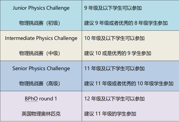 BPhO 除了Round 1,2外,其实包括一系列针对不同年级同学的挑战赛,对于初次尝试物理竞赛的同学,可以对应年级,选择先参加适合的挑战赛。