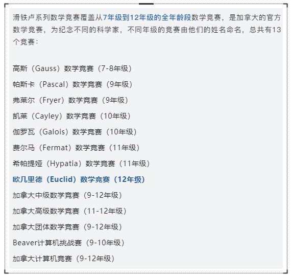欧几里得竞赛:是滑铁卢系列竞赛中难度较高的竞赛,含金量及认可度颇高!