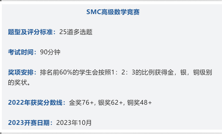 2023UKMT数学竞赛报名比赛及截止时间,JMC/IMC/SMC英国数学竞赛介绍。UKMT 组织的众多数学思维挑战活动中,最主要的是三个级别:初级数学思维挑战活动 (JMC)、中级数学思维挑战活动 (IMC)和高级数学思维挑战活动 (SMC)。今天小编给大家介绍一下SMC赛事。