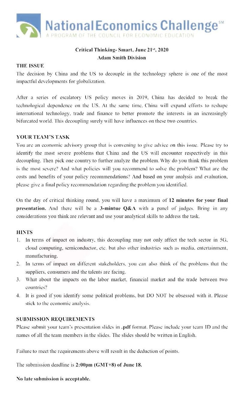 至于经济创新赛(Super Econ)是在案例大剖析后考生可以选择性参加的活动,故在此就不详细介绍了。