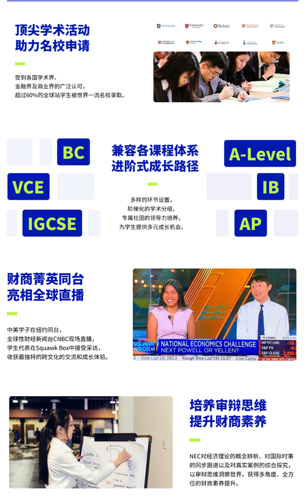 NEC受到美国学术界、金融界及商业界的广泛认可。参加NEC的独特备赛经历和取得的优异成绩将会最大程度地助力美本升学。