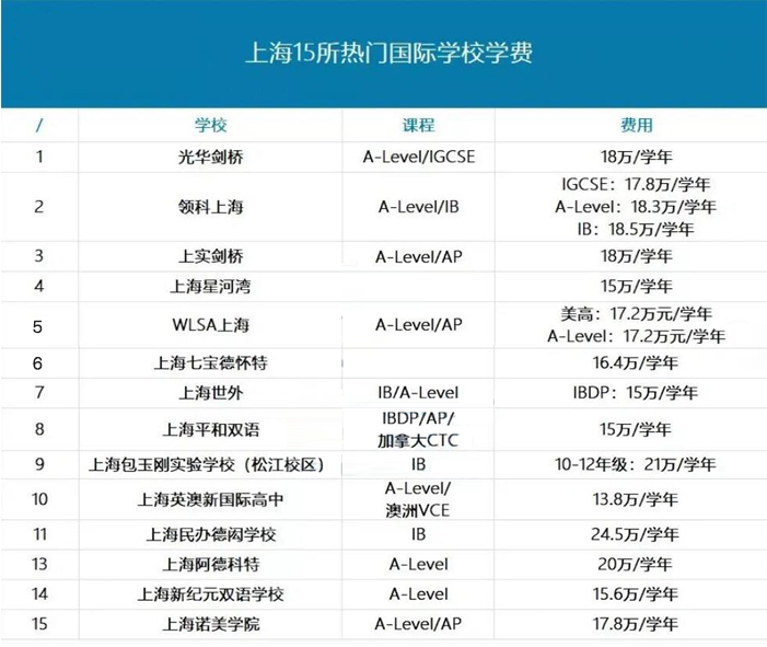 以高中阶段为例,我们盘点了上海30所国际化学校的学费,一起来看看