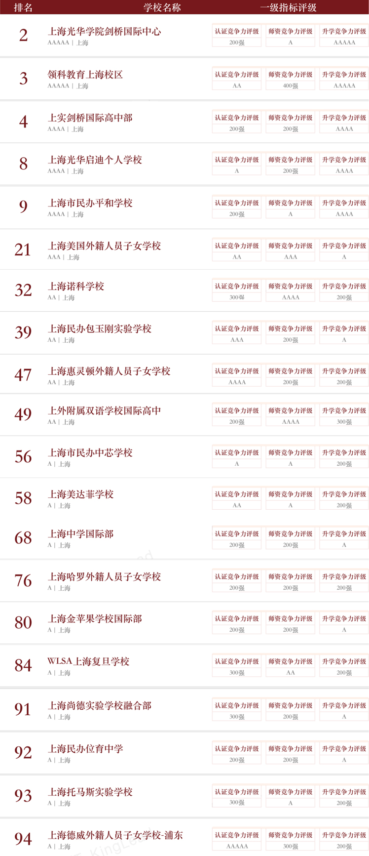 2022中国国际学校竞争力排行榜
