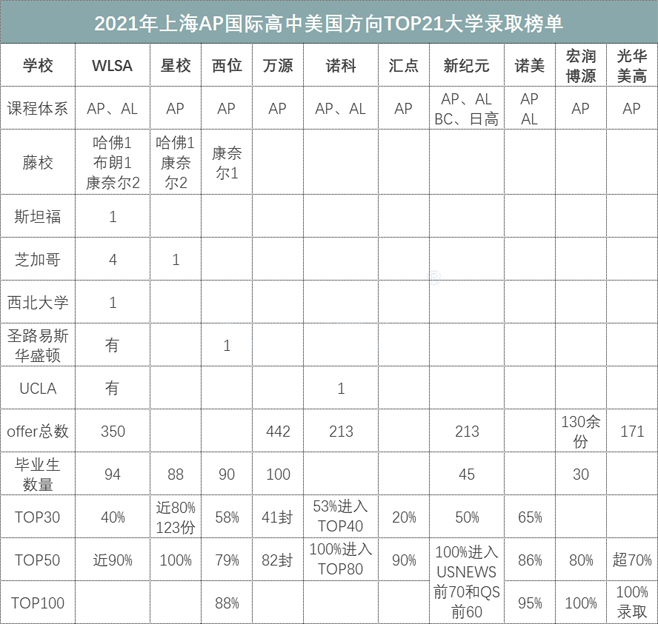IB学校里获得这一“殊荣”的有世外、平和、七德、位育等,可它们在今年美本申请上,都输给了同一所学校。这所学校也并不是黑马学校,黑马是它的曾经,现在的它是大满贯名校——WLSA上海学校。