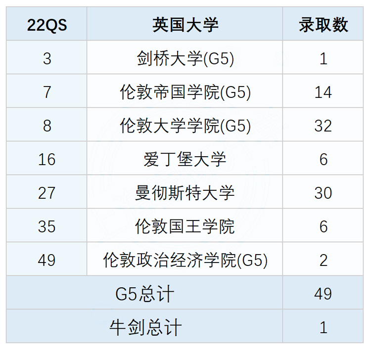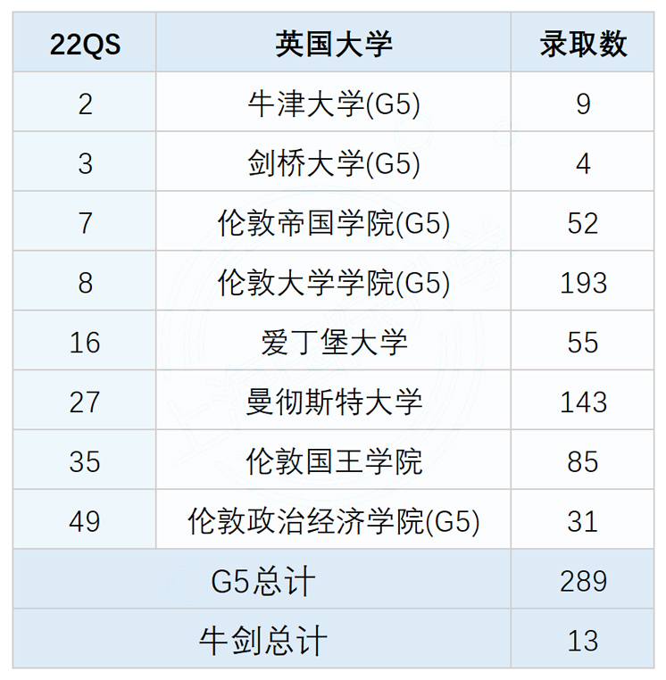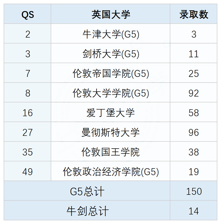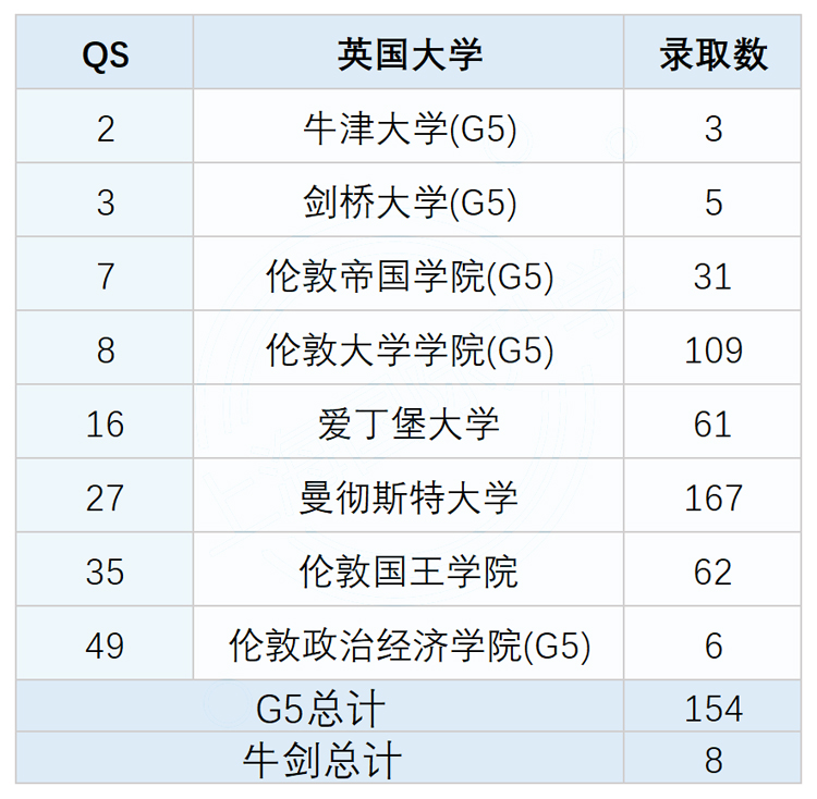 A-Level 课程主要以申请英联邦国家大学为主,一般A-Level课程学校都以英国牛剑、G5大学录取情况为学校升学实力的衡量标准,本期也将以两者作为升学情况数据。