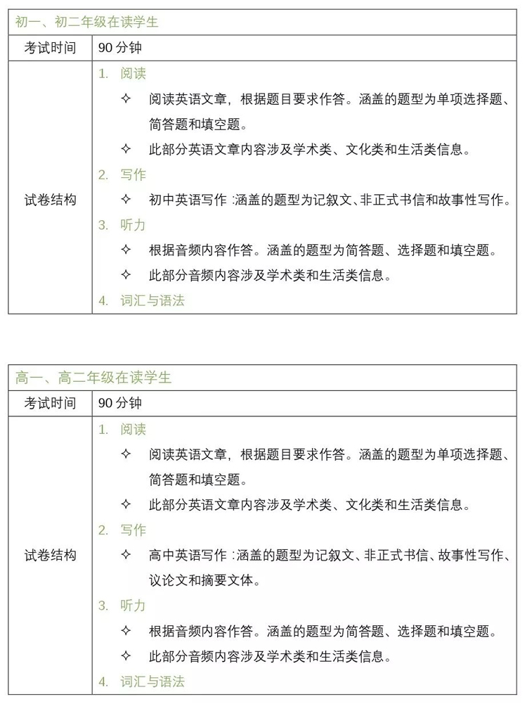 英语笔试类似于托福题型和难度的阅读、语法、写作题。此外还有接近SAT难度的语法题。另外,包校初升高的基本门槛是托福90+。