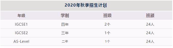 玮仕集团上海学校WES国际课程中心共设置了IGCSE1 / IGCSE2 / AS-level /A2-level四个年级,2020年秋季入学招生计划如下: