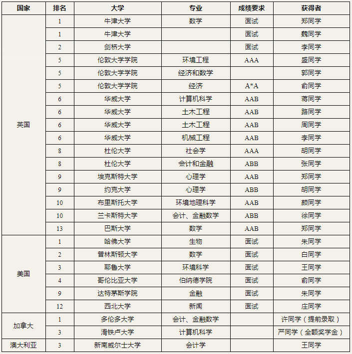 2) 经我校自年级主招生考试录取的同学,不再要求中考成绩。