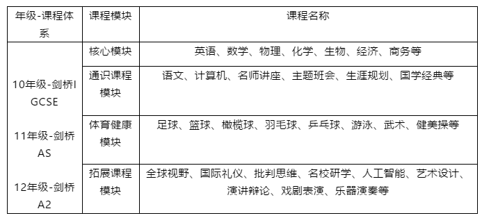 从剑桥国际引进了英国全日制IGCSE和A Level课程体系,拥有独立的课程考试资格,每年举行两次官方考试。剑桥国际课程是由剑桥国际组织各学科领域的专家设计而成,体现了剑桥学子自信、负责、反思、创新和参与(confident, responsible, reflective, innovative and engaged)的五大特征,是目前世界上采用最广泛的国际课程。
