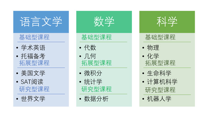 学校帮助学生确立正确的人生观念、构建完备的知识结构、整合未来社会所需的专项特长。各类课程设计均立足于面向全体基础上培育个体特长和群体英才。