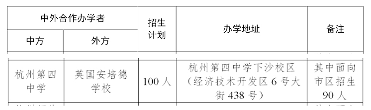 今日,杭州市教育局发布关于2023年普通高中中外合作办学项目面向市区招生工作的通知。为做好2023年我市普通高中中外合作办学项目(以下简称中外合作班)面向市区(上城区、拱墅区、西湖区、滨江区、钱塘区和西湖风景名胜区,下同)的招生工作,现将有关事项通知如下。