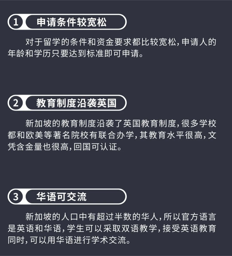 ⼊学即可获得新加坡私⽴学院的预录取通知书,学⽣在国内读完⾼中2年课程后,赴新加坡参加⽂凭课程2年,对接澳洲、英国、美国⼤学本科1年,获得本科学位;继续深造1年,可获得硕⼠学位。