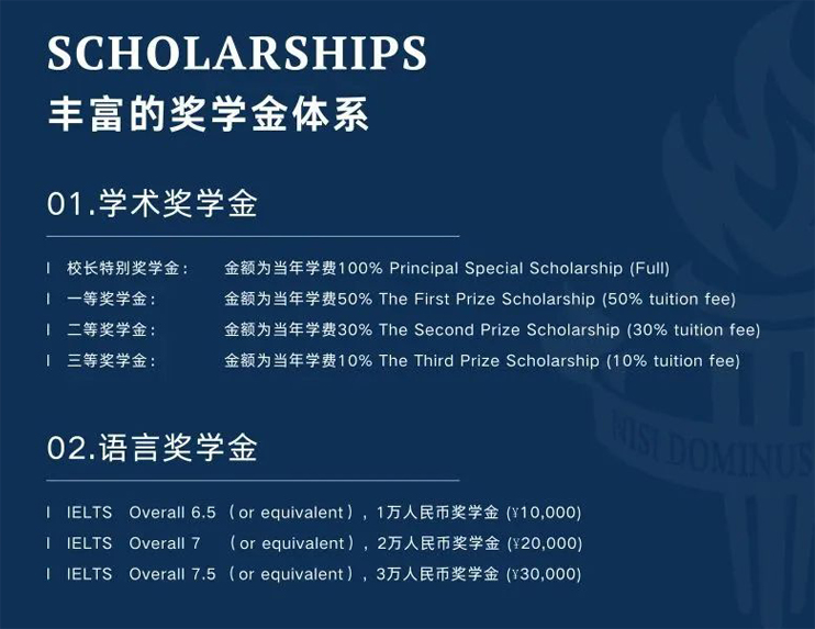 为了奖励成绩突出表现优异的学生,上海阿德科特学校设立入学学术奖学金和语言奖学金,具体奖学金名额根据当年招生情况按比例确定。同时,我校还设有丰厚的校内奖学金。