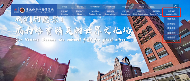 登录网址http://www.csints.org.cn/ ,点击右侧申请学校一栏,选择在线登记,即可进入预约登记流程。