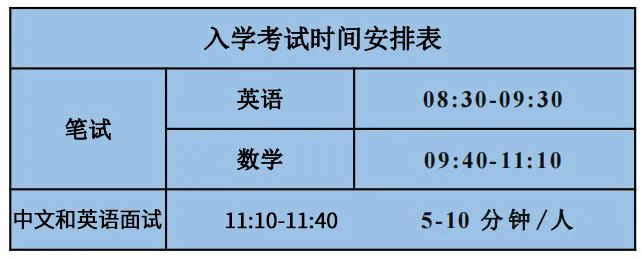面试为中英文,考核学生英文表达、个人潜质、学习能力、综合素养等。考试报名完成后,招办老师将与家长和考生确认考试的具体安排;