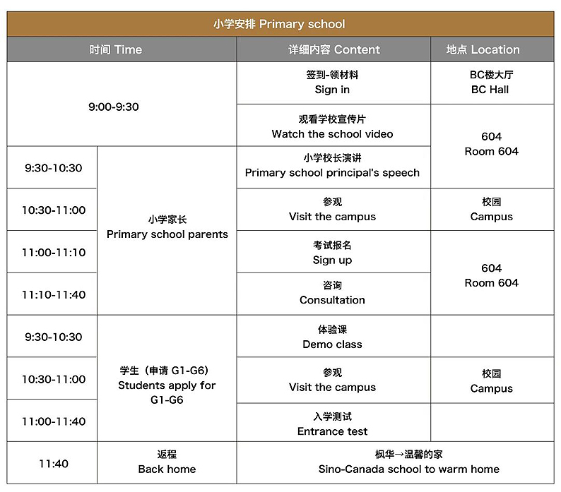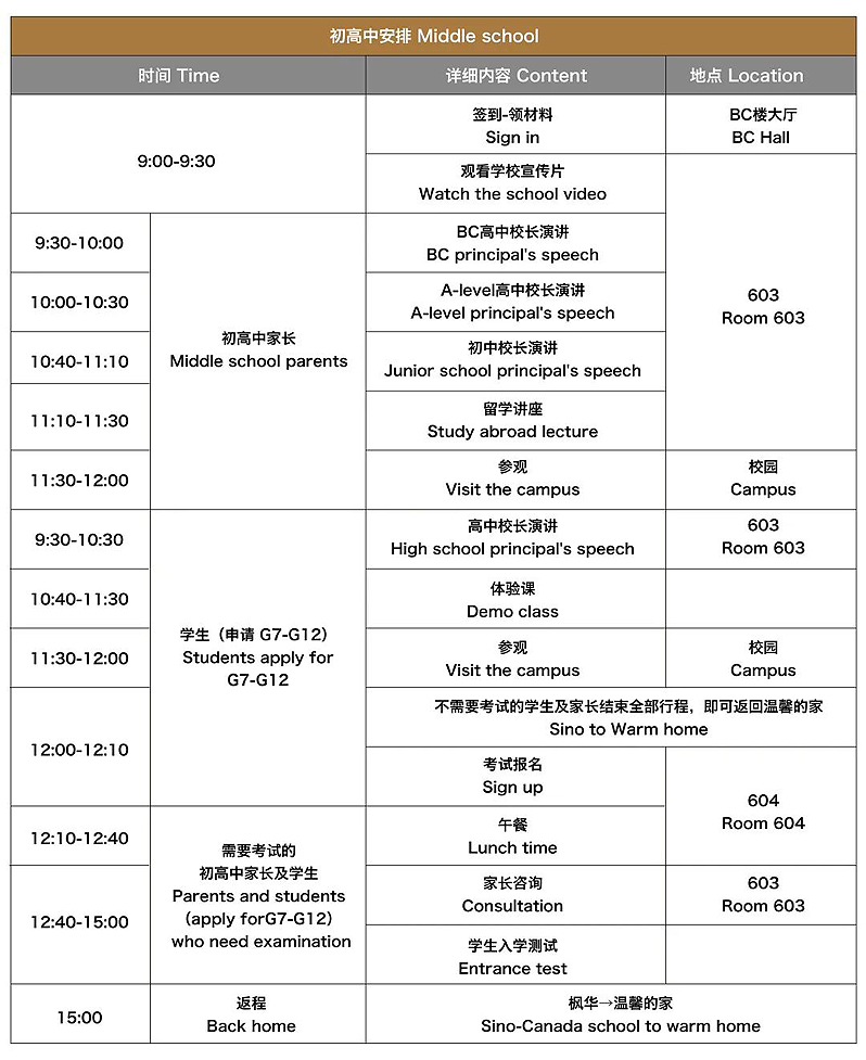 所有报名者均需参加由中加枫华组织的入学考试,考试成绩将作为录取参考,测试时间由招生办公室安排后通知