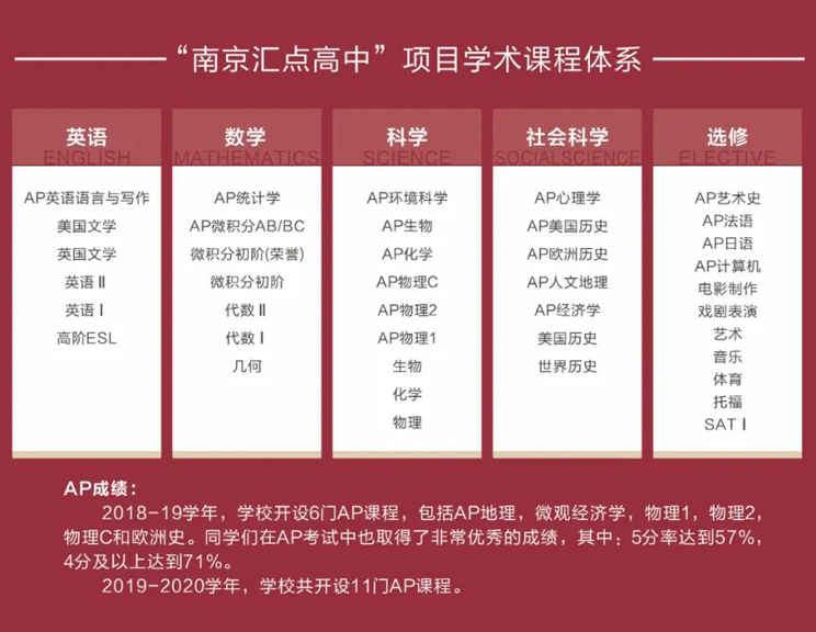 南京汇点高中项目自2017年创办,从美国硅谷到南京仙林大学城,南京汇点高中项目集成中美先进的教育经验,以加州汇点本部蓝带学术品质课程体系为蓝本,融合国内严谨的管理模式,强调社会活动与学术能力的结合,全程穿插专业课外活动以及升学指导方案,旨在教会汇点学子知识、技能、做事、做人。