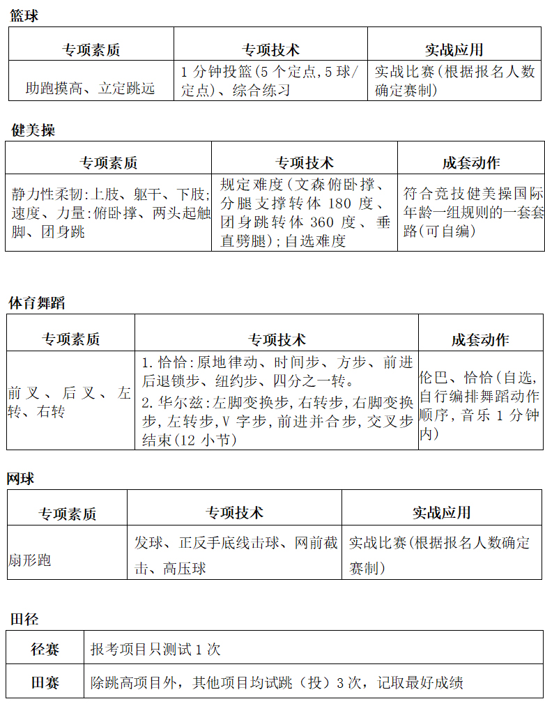 2)对确有培养前途,但未能参加县区及以上教育、体育行政部门组织的体育类比赛者,如需报考,须由考生所在学校推荐并报教育主管部门备案。