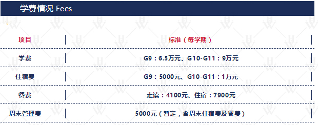初中部学费 65000元/生/学期