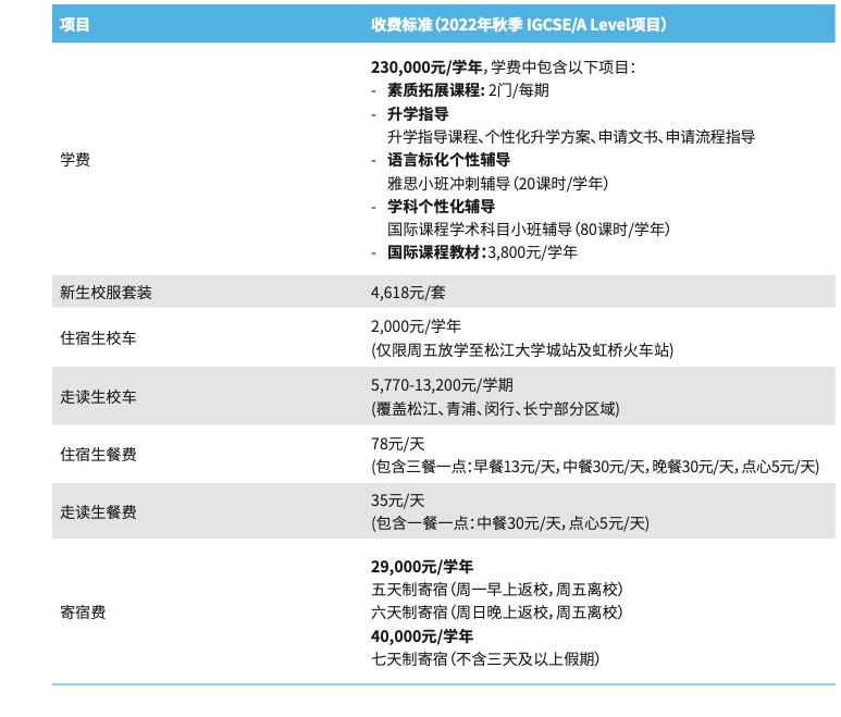 校车费:1,800元/月(松江区内,可能会按上座率下调),2,800元/月(松江区外)。