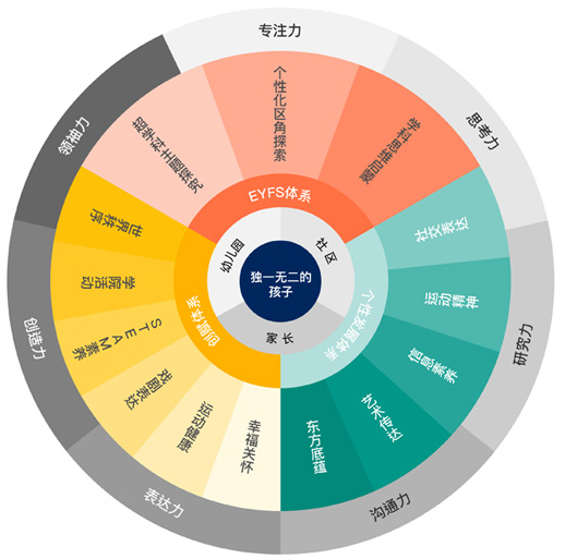 课程依托“英国早期基础阶段教育框架(EYFS)”与“中国3-6岁儿童学习与发展指南”,围绕 “独一无二的孩子”这一宗旨精心设计。我们关爱并理解每一位孩子,并竭尽全力设计涵盖广泛的学习内容,采用千形万态的学习方式,将园所、家长与社区联动,全力帮助他们释放自己的潜能与才华。