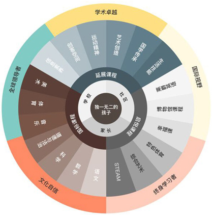 小学部课程分为国标课程、启悦课程和延展课程三个板块。国标课程是国家规定的各年级所必须完成的课程,启悦课程是以英国莱爵为主的引进课程以及学校开发的特色课程,延展课程就是学生自选课程,内容以科技、艺术和运动为主。课程设置的核心理念就是“融合”,从目标、内容、师资、方式、评估等方面全面融合中西教育精粹,融合中西方在知识学习、创造力、适应性、独立性、批判性思维能力、合作能力、实践能力等方面的综合能力。