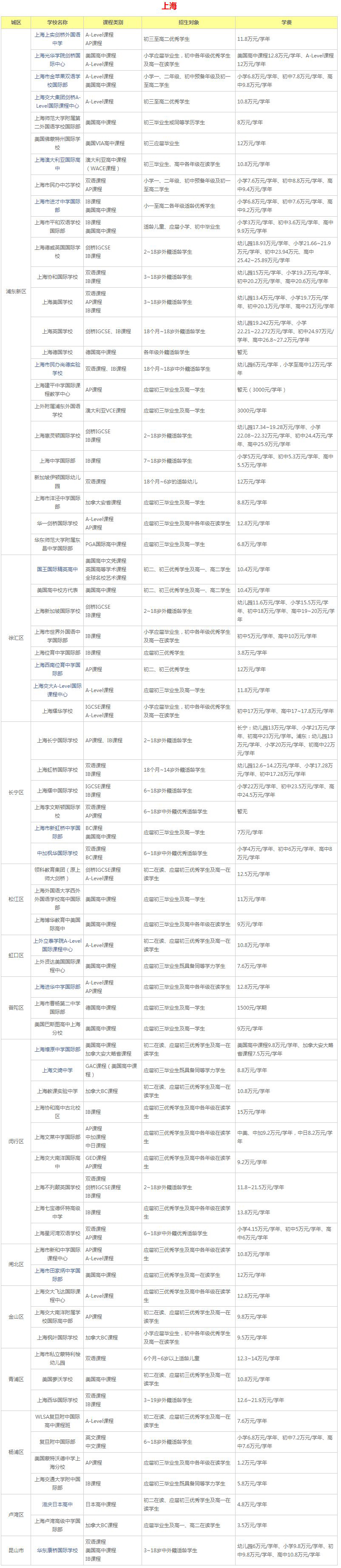 随着经济水平的提高,果然对教育也越来越重视,国际学校对于大多数家长和学生来说,都是一个从陌生又到熟悉的词语。陌生是因为大多数家长和学生对国际学校了解不多,甚至完全不知道国际学校是做什么的;熟悉又是因为这个词已经越来越火热,特别是国际学校学费每每被爆出“天价”,让中国的众多家长对其印象深刻!说到国际学校,相信大家和小编一样都非常关心国际学校学费的问题,为此小编特意整理汇总了上海的国际学校学费供各位家长参考,希望各位家长都能找到适合自己孩子的国际学校。