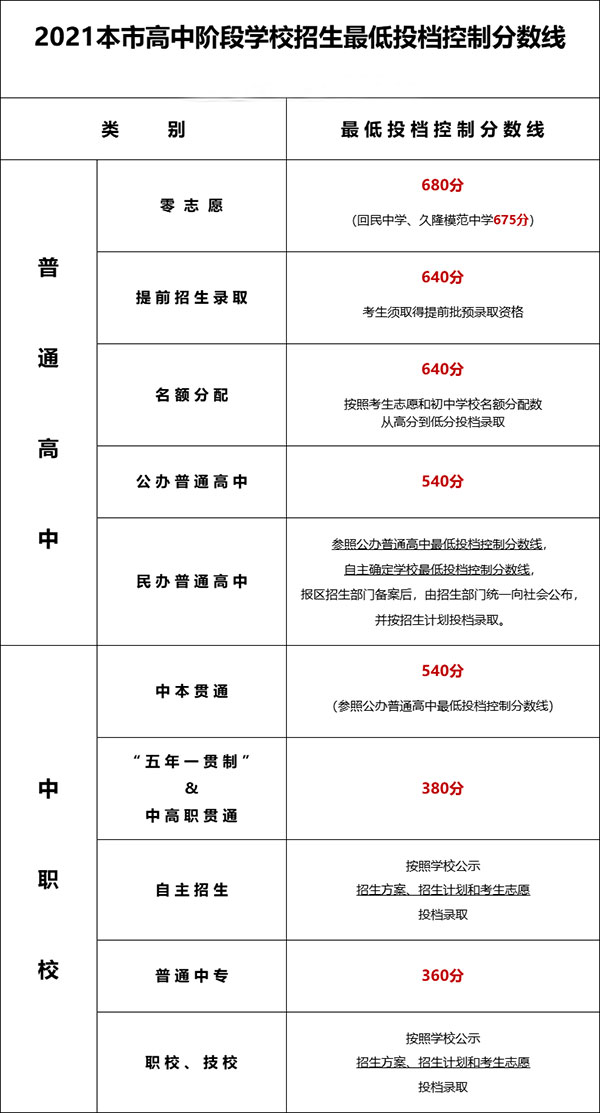 本文标题:零志愿680,提前招生640!2021年上海中考最低投档控分线确定!